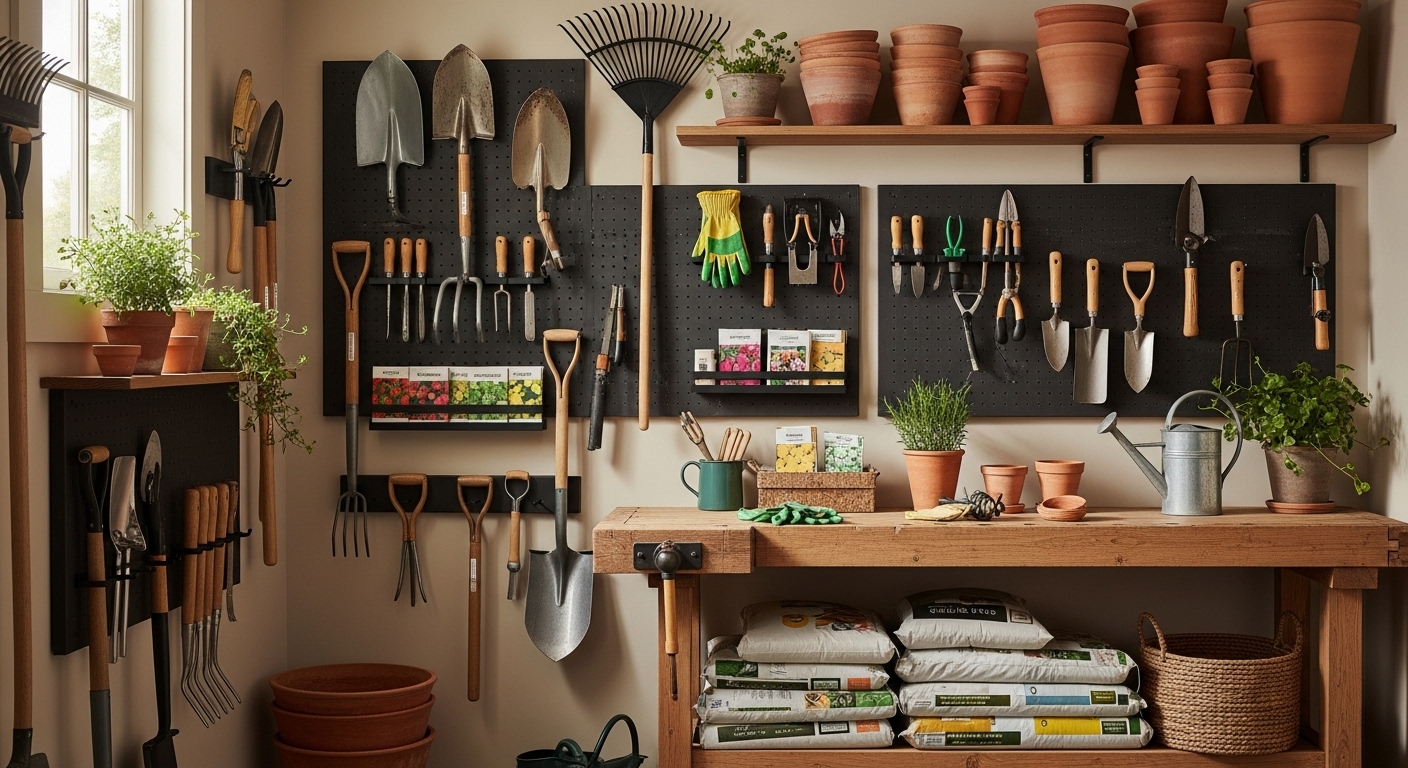 Как организовать удобную зону хранения садового инвентаря своими руками
